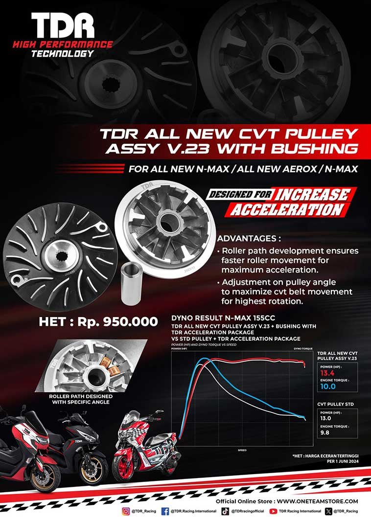 TDR All New CVT Pulley Assy V.23 For All New N-Max and All New Aerox